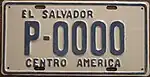 El Salvador requires its residents to register their motor vehicles and display vehicle registration plates.[1] Current plates are North American standard 6 × 12 inches (152 × 300 mm).[2] The new design started its use during 2011. In the background of the plate, you can find the flag of El Salvador. [3]