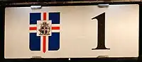 President 1 Seal of the Icelandic President on left and number '1' on right. Number 1 is the president's vehicle