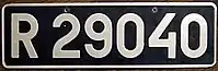 Former version, issued before 1 January 1989 A12345 Black background, silver frame and silver characters Those plates had district codes and were issued sequentially, e.g., R stands for Reykjavík, and this is plate number 29040 issued in that district. The plates followed the owner, and he could re-use them, e.g., when he bought a new or used vehicle. If he moved to another district, the plates had to be replaced. From 1 January 1989, all further use of those plates was forbidden (except for vehicles that already had them on).
