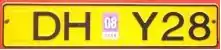 Customs 12 1234 12 Four white numbers on a black background with two letters in a vertical red line on each side. For temporary import. The number for the month on the left side and the year on the right side, indicating the duration of the registration.