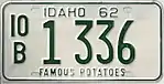 1962 As 1958 base, but with "IDAHO 62" at top "FAMOUS POTATOES" as on 1958 base A 12345