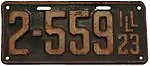 1923 | White on green with border line; "ILL 23" at right | none | 123-456 | 1 to approximately 841-000 | |