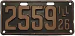 1926 | White on dark blue with border line; "ILL 26" at right | none | 1-234-567 | 1 to approximately 1-180-000 | |