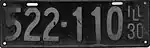 | 1930 | White on black with border line; "ILL 30" at right | none | 1-234-567 | 1 to approximately 1-418-000 | ||