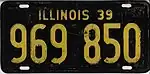 1939 | Yellow on black; "ILLINOIS 39" at top | none | 1234 567 | 1 to approximately 1639 000 | |