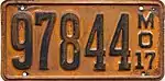 1917 Embossed black serial on gold plate; "MO 17" at right 123456 1 to approximately 151000