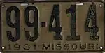 1931 Embossed black serial on gray plate with border line; "1931 MISSOURI" at bottom 123-456 1 to approximately 659-000