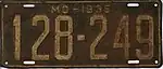 1935 Embossed white serial on dark green plate with border line; "MO–1935" centered at top 123-456 1 to approximately 655-000