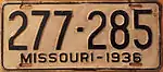 1. "Old Missouri License Plates". LeatherLicensePlates.com. Retrieved August 3, 2017.