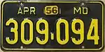 1955–60 Embossed yellow serial on black plate with border line; month of expiration at top left and "MO" at top right 123-456 1 to