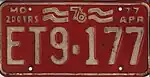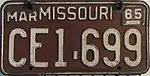 The U.S. state of Missouri first required its residents to register their motor vehicles in 1907. Registrants provided their own license plates for display until 1911, when the state began to issue plates.[1]