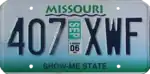 1997 – early 2006 Embossed dark blue serial on reflective white, blue and green gradient plate; "MISSOURI" screened in green, with wavy dark blue underline, centered at top "SHOW-ME STATE" screened in dark blue centered at bottom 123 ABC 001 AAA to 999 ZZZ Letters I, O, Q, U and V not used in serials, and D used only as the first letter.[4]