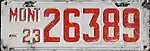1923 | Embossed red serial on white plate; "MONT –23" at left | none | 12345 | 1 to approximately 66000 | |