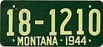 1944 White serial on green fiberboard plate; "MONTANA-1944" centered at bottom none 1-12345