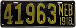 1918 | Yellow on black; "NEB 1918 at right" | none | 123456 | 1 to approximately 171000 | |