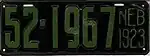 1923 | Green on black; "NEB 1923" at right | none | 1-12345 10-1234 |