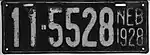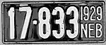 1929 | White on black; "1929 NEB" at right | none | 1-12345 10-1234 |