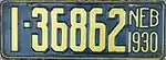 1930 | Yellow on dark blue; "NEB 1930" at right | none | 1-12345 10-1234 |