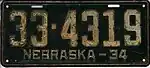 1934 | White on dark green; "NEBRASKA – 34" at bottom | none | 1-12345 10-1234 |