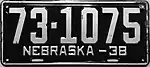 1938 | Silver on black; "NEBRASKA – 38" at bottom | none | 1-12345 10-1234 |