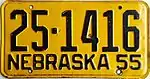 1955 | Black on golden yellow; "NEBRASKA 55" at bottom | none | 1-12345 10-12345 |