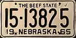 1965 | Black on white with border line; "19 NEBRASKA 65" at bottom | The Beef State | 1-123456 10-12345 |