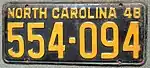 1948 | Embossed golden yellow serial on black plate; "NORTH CAROLINA 48" at top | none | 123-456 | 100-001 to approximately 760-000 | |