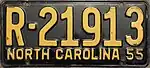 1955 | Embossed golden yellow serial on black plate; "NORTH CAROLINA 55" at bottom | none | 123-456 | 100-001 to 760-000 | |