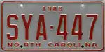 1981–82 | As above, but with "NORTH CAROLINA" at top and "1981" centered at bottom | XHA-101 to approximately YJZ-999 | |||