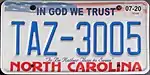 - ↑ Stradling, Richard (July 1, 2019). "'In God We Trust' now an option on your next North Carolina license plate". The News & Observer. Raleigh. Retrieved November 26, 2019.