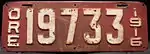 1916 Embossed white serial on dark red plate; vertical "ORE" and "1916" at left and right respectively 12345 1 to approximately 34000