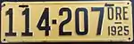 1925 Embossed black serial on yellow plate; "ORE 1925" at right 123-456 1 to approximately 220-000