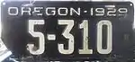 Embossed white serial on black plate; "OREGON-1929" at top 123-456 1 to approximately 330-000 Validated from January 1 through June 30, 1930, with windshield sticker.