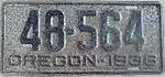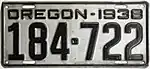 1936 Embossed black serial on silver plate with border line; "OREGON-1936" at bottom 123-456 1 to approximately 276-000