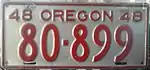 1948 Embossed red serial on unpainted aluminum plate with border line; "48 OREGON 48" at top 123-456 1 to approximately 511-000