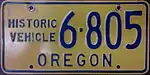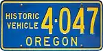 Special Interest before c. 2004 Blue on gold; "OREGON" at bottom S/P 12345 S/P 00001 to approximately S/P 10000 Issued on vehicles that are maintained as collectors' items and are at least 25 years old.