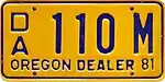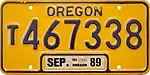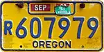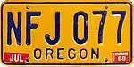 c. 1983–88 Blue on gold; sticker box at top and "OREGON" at bottom U041001 to approximately U110000
