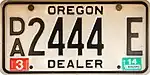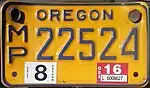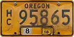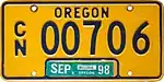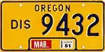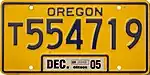 The U.S. state of Oregon first required its residents to register their motor vehicles in 1905. Registrants provided their own license plates for display until 1911, when the state began to issue plates.[1]