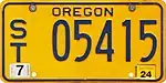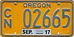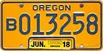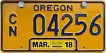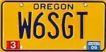 Blue on gold; "OREGON" at top ? to L/S 00521 (as of September 23, 2016)