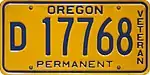 c. 2004–present Blue on gold; "OREGON" at top and "PERMANENT FLEET" at bottom P/F 27001 to P/F 44010 (as of July 4, 2021)