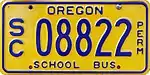 School Bus Blue on gold; "SCHOOL BUS" at top, "OREGON" at bottom and "PERM" at right S/C 12345 S/C 00001 to present