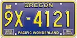 Pacific Wonderland 2009–present Gold on blue. Embossed serials. 9A-1234 9P-0001 to 9Z-9999 Special re-issue of 1960–63 passenger base to celebrate Oregon's 150 years of statehood. Surcharge supports the Oregon State Capitol Foundation and the Oregon Historical Society. Originally limited to 40,000 plates; increased to 80,000 in 2015.