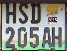 Like their counterparts in Zimbabwe, licensing requirements include a self-adhesive version of the plate that is displayed on the vehicle windshield. Unusually, this version contains a QR code that encodes the plate number.