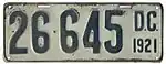 1921 | Embossed blue serial on white plate with border line; "D.C. 1921" at right | none | 12-345 | 1 to approximately 67-500 | |
