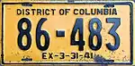 March 1, 1940 – March 31, 1941 | Embossed black serial on golden yellow plate with border line; "DISTRICT OF COLUMBIA" and "EX-3-31-41" centered at top and bottom respectively | none | 123-456 | 52-000 to approximately 182-000 | |