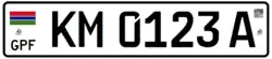 52 cm x 11 cm Black on White Gambian Flag as well as the text GPF on the left side of the license plate |