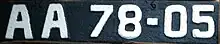 At that time, there existed a white-on-black format which is to be assigned to business- and privately-owned cars. Later, this color scheme along with diplomatic plates were put into use.