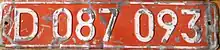 Plate for large tractors, 1980 standard; note the thin strokes.