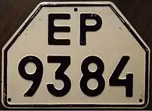 Motorcycle plate of 1980 standard; note the straight verticals of 0.