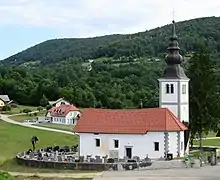 The local church is dedicated to Saint Martin and belongs to the Parish of Hinje. It is a 14th-century building that was restyled in the Baroque in the second half of the 17th century.[5]